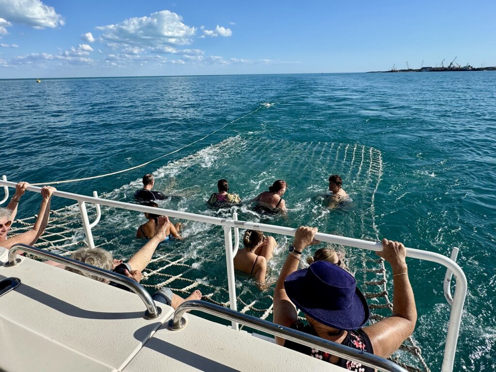 Equally enjoyable for a number of passengers on board was a swim on the boom net attached to the back of the boat.